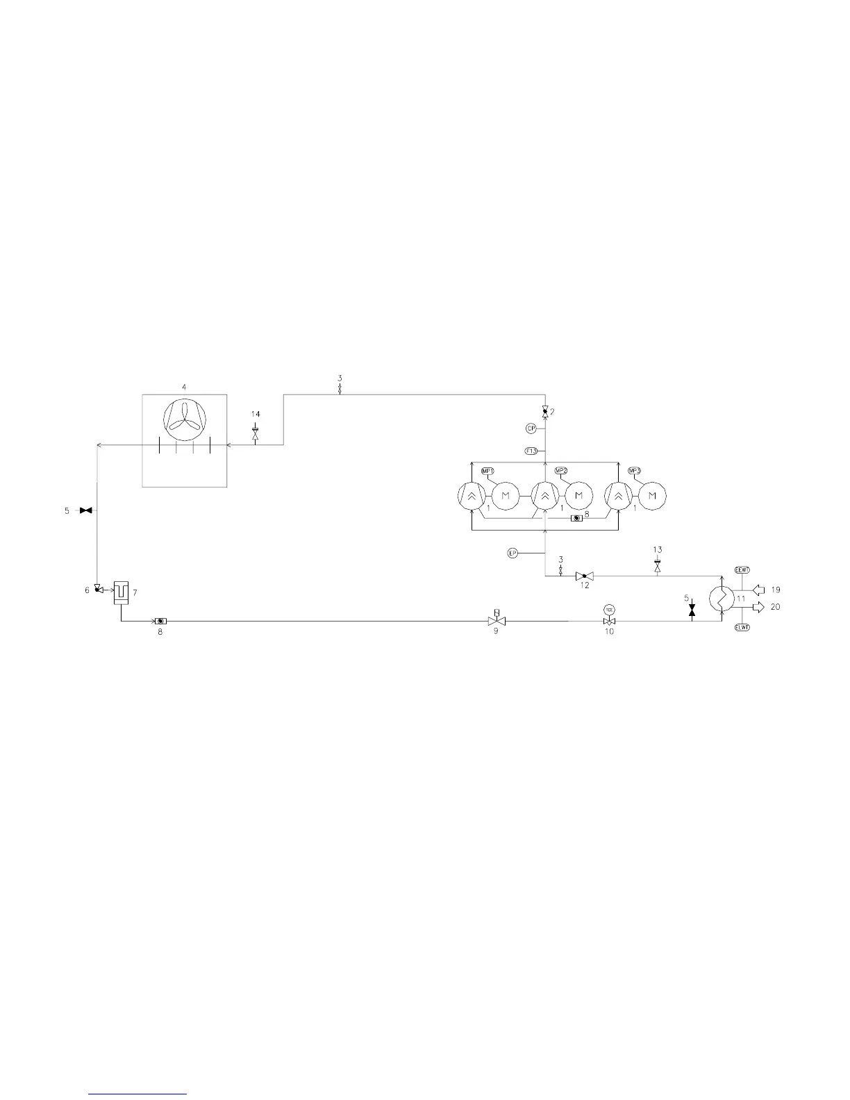 A Typical refrigerant circuit The number of compressors and water inlet and outlet are indicative. Please refer to the machine dimensional diagrams for exact water
