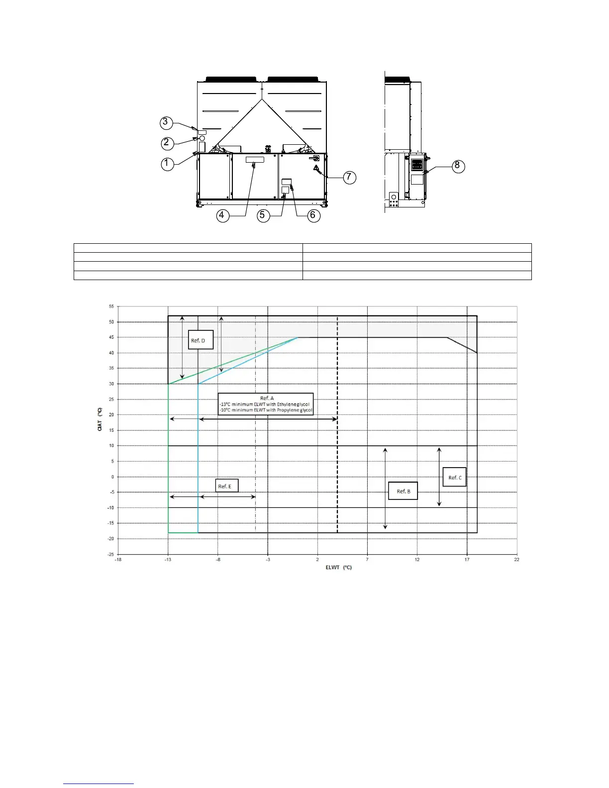 E = In this area the unit minimum capacity might be higher than value shown in Technical Specification table