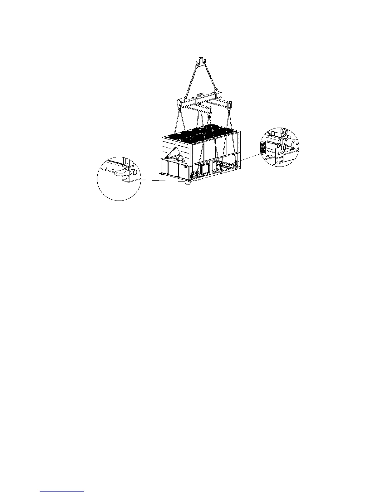 (Schéma znázorňuje verziu iba s ôsmimi ventilátormi. Spôsob zdvíhania pre verzie s 10-12 ventilátormi je rovnaký)