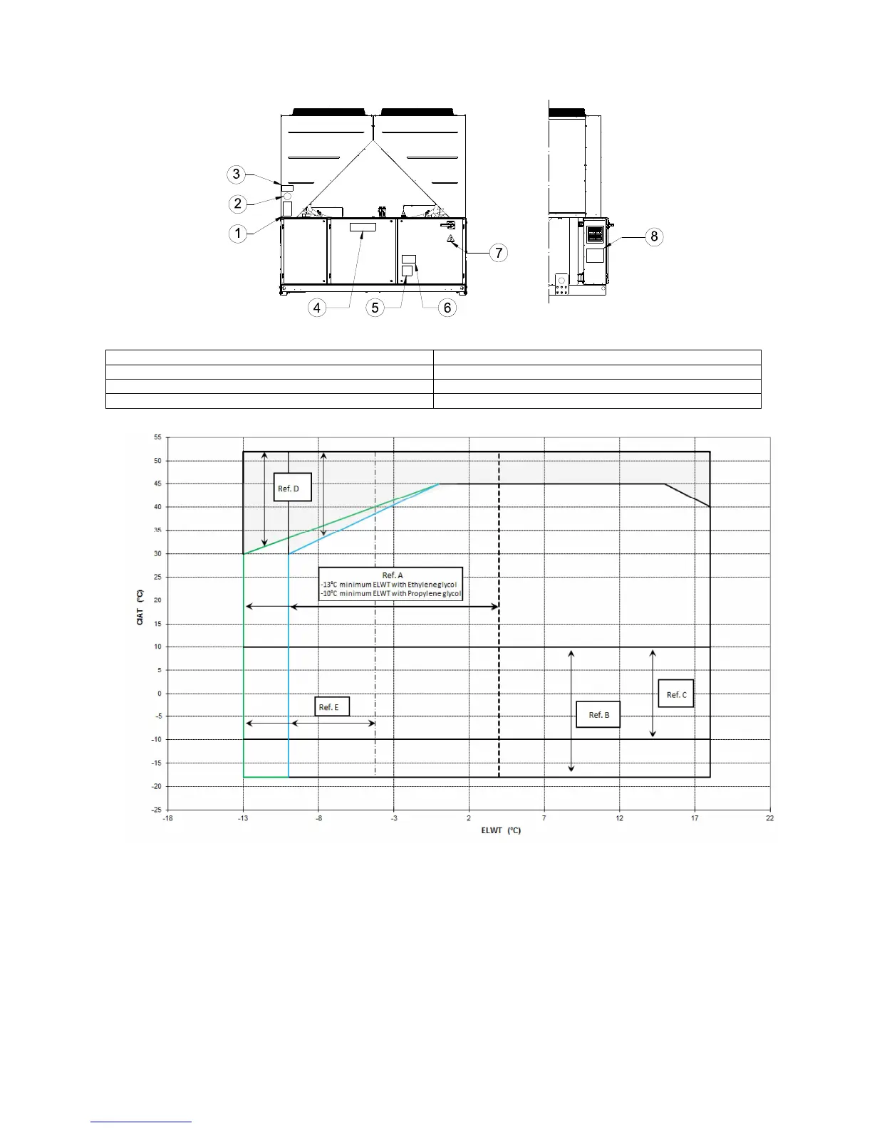 ELWT = Evaporator Leaving Water Temperature (°C) (Verdampfer-Auslass-Wassertemperatur (°C))