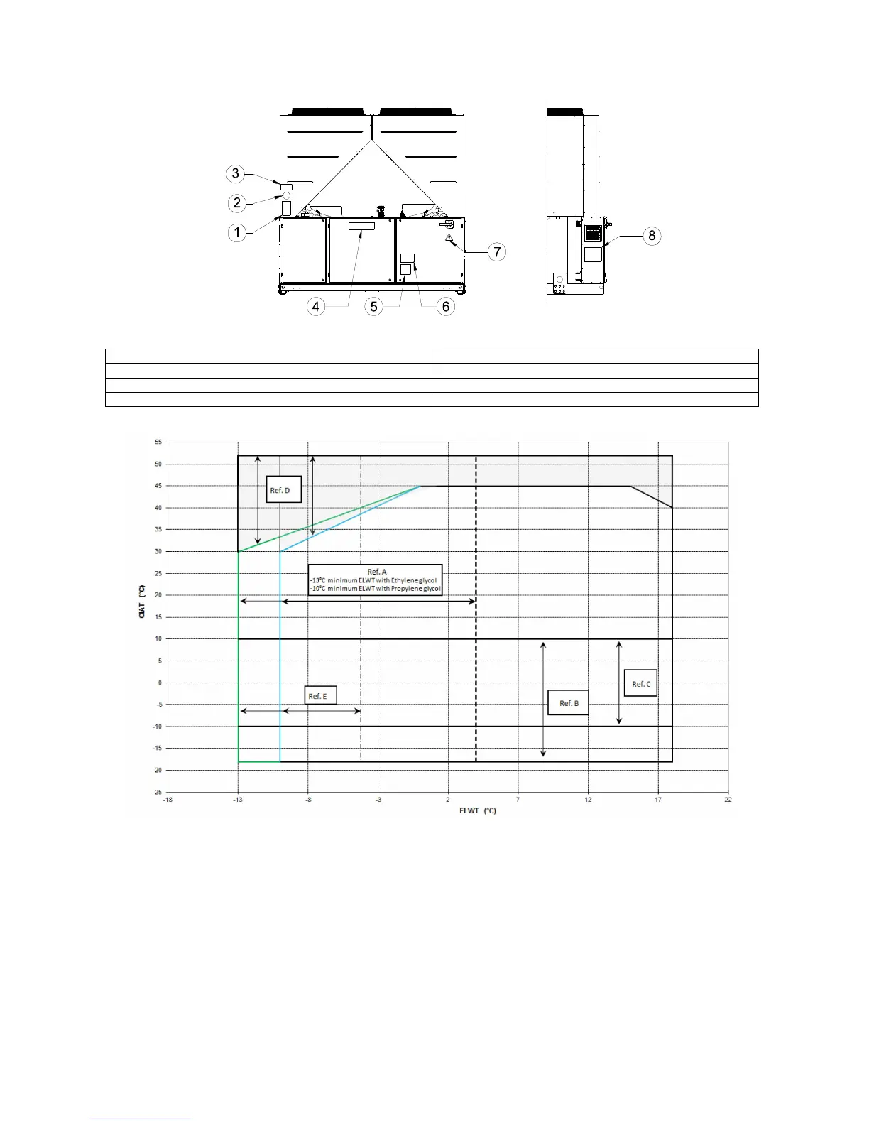 A = Funcionamiento con glicol (Evap LWT inferior a 4°C)