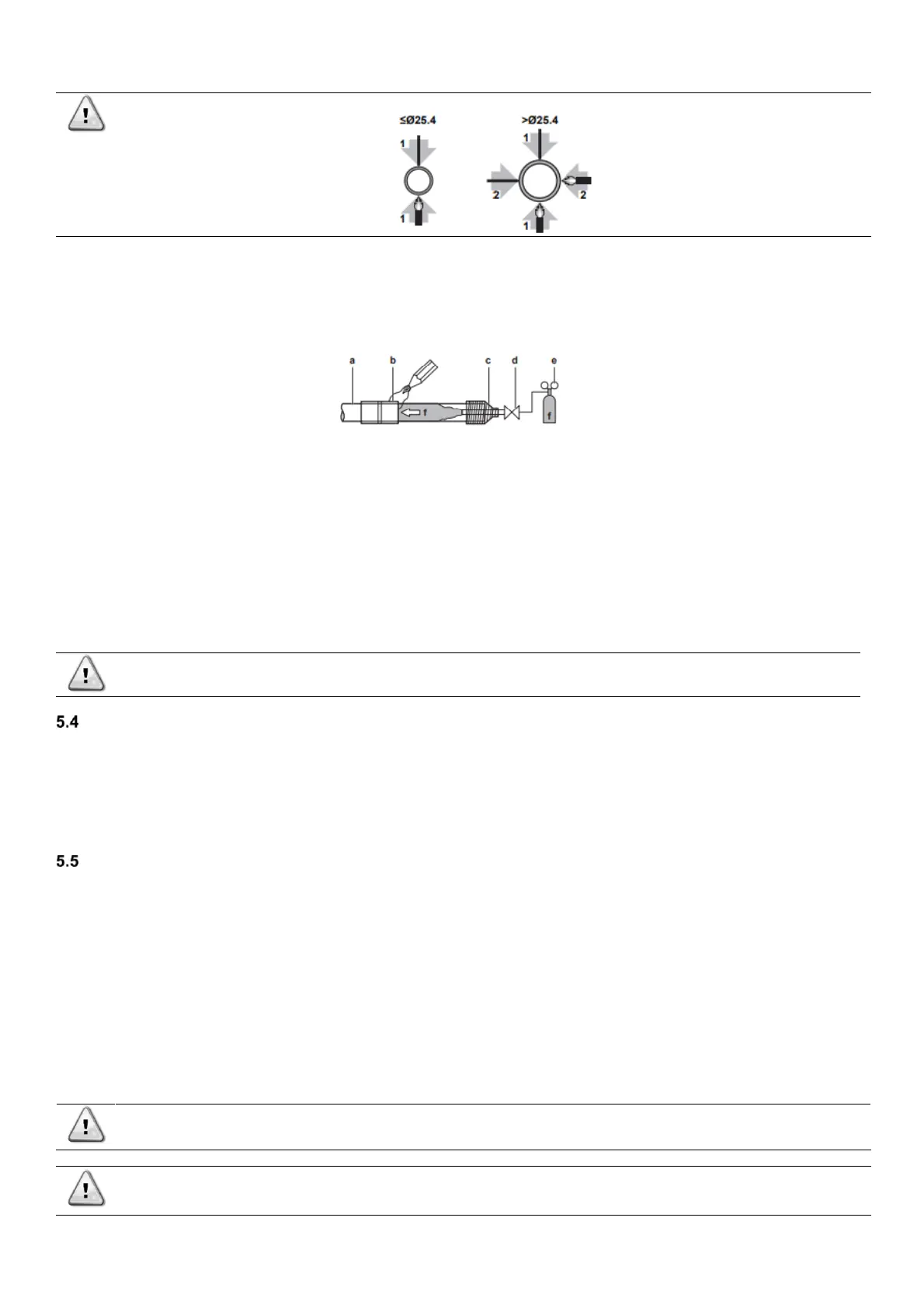 ▪ When brazing, blow through with nitrogen to prevent creation of large quantities of oxidised film on the inside of the piping. This film