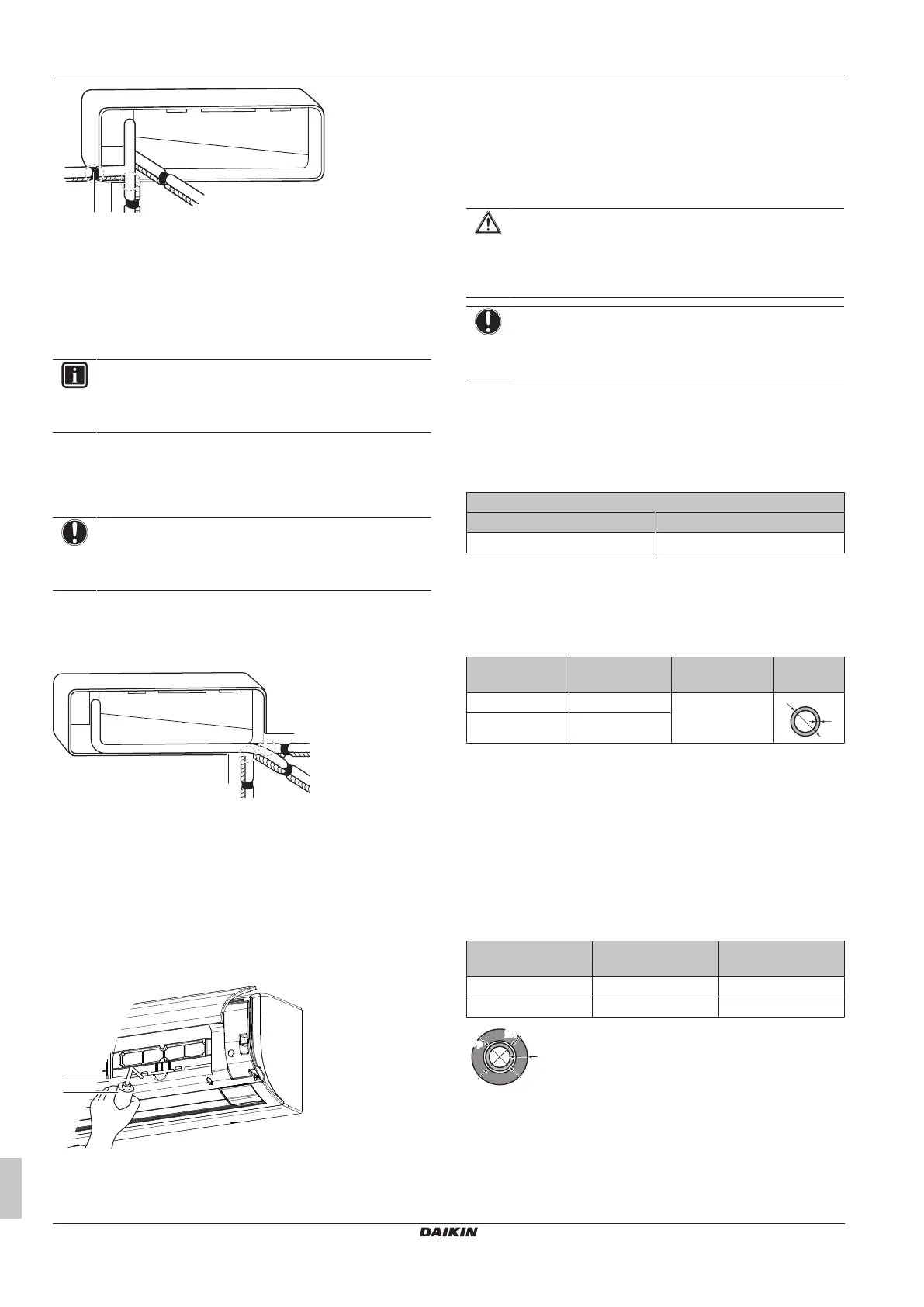 4 Attach the drain hose to the refrigerant piping bottom side using