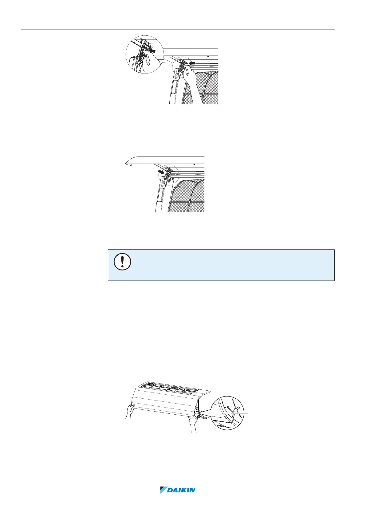 5 Attach the front panel. Align the hooks of the front panel with the slots and