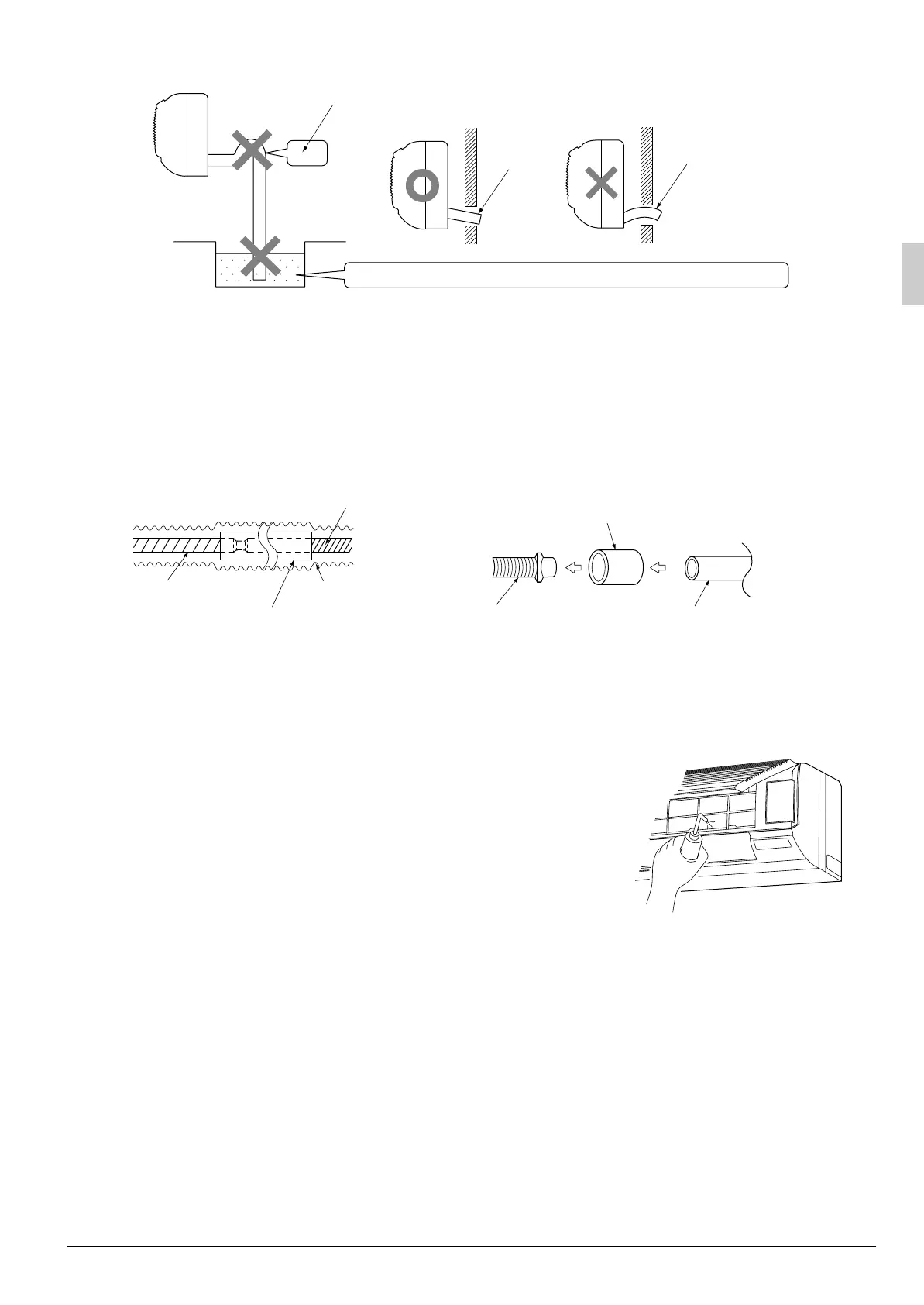 • When extending the drain pipes, use commercially available extension hose, and be sure to insulate