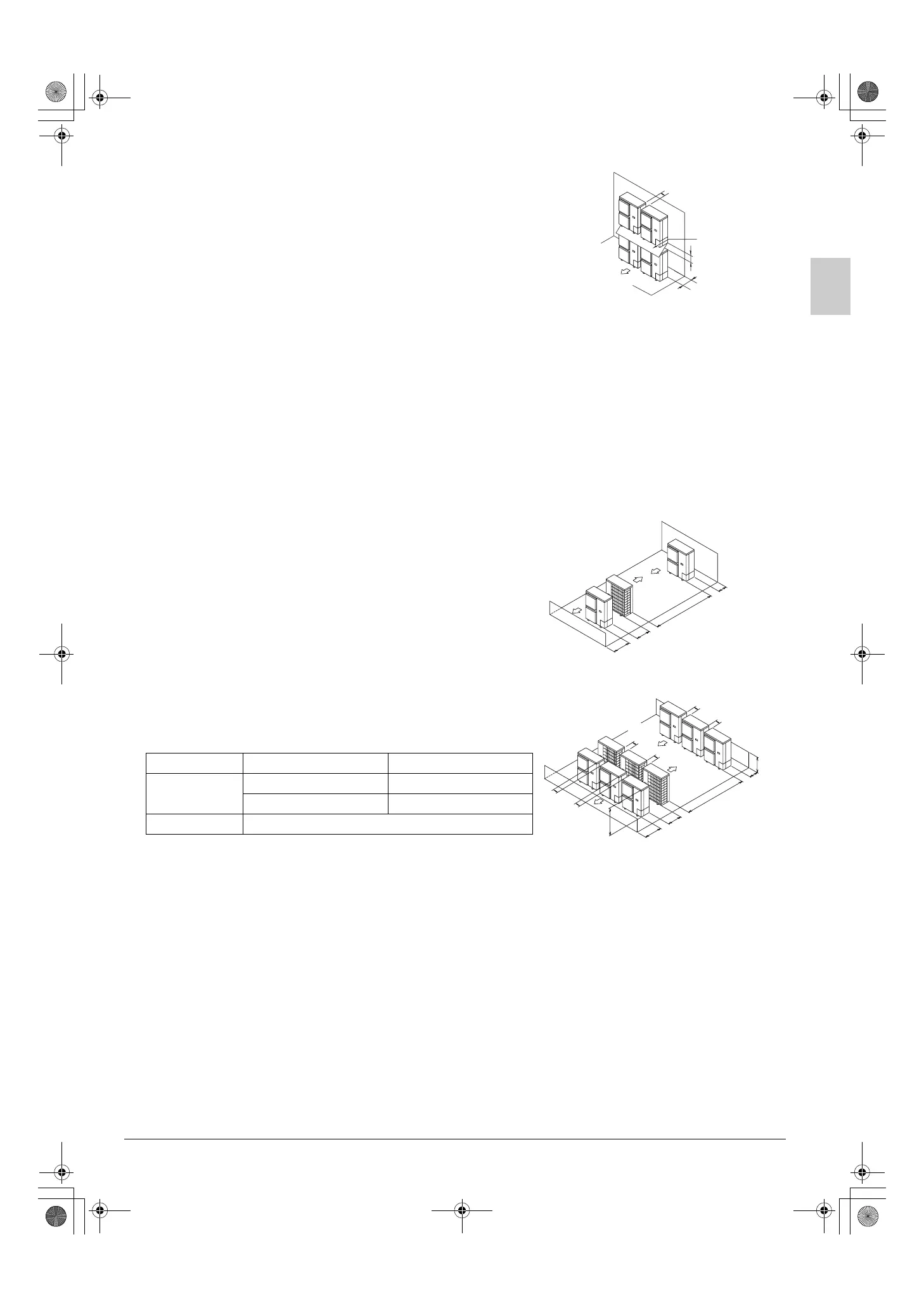 the space between the upper and lower outdoor units should be at least 100 mm. (Close off the gap