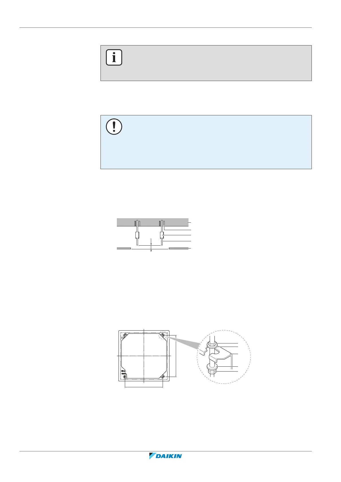 ▪ Suspension bolts. Use M8~M10 suspension bolts for installation. Attach the