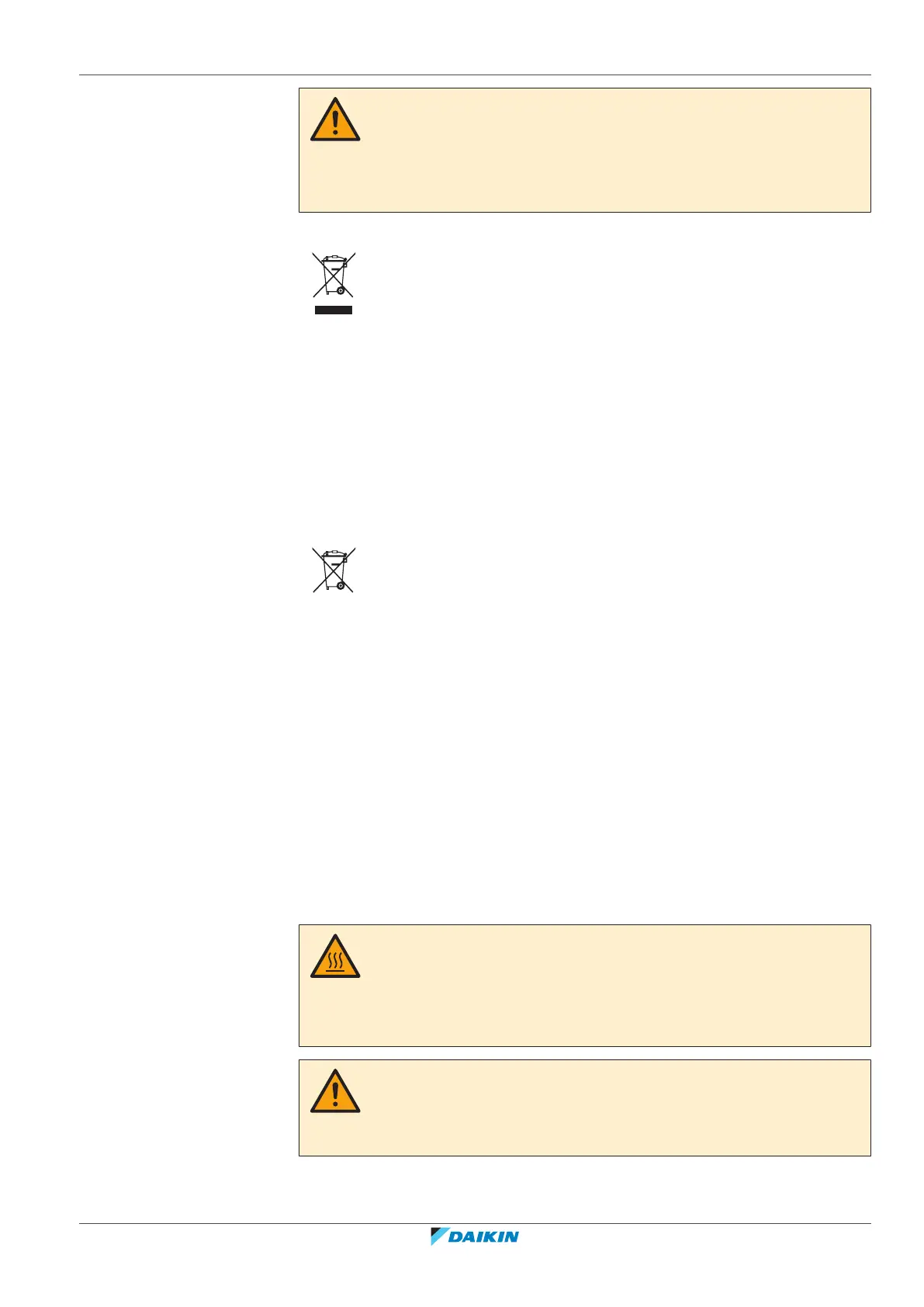 ▪ Do NOT touch the refrigerant piping, water piping or internal parts during and