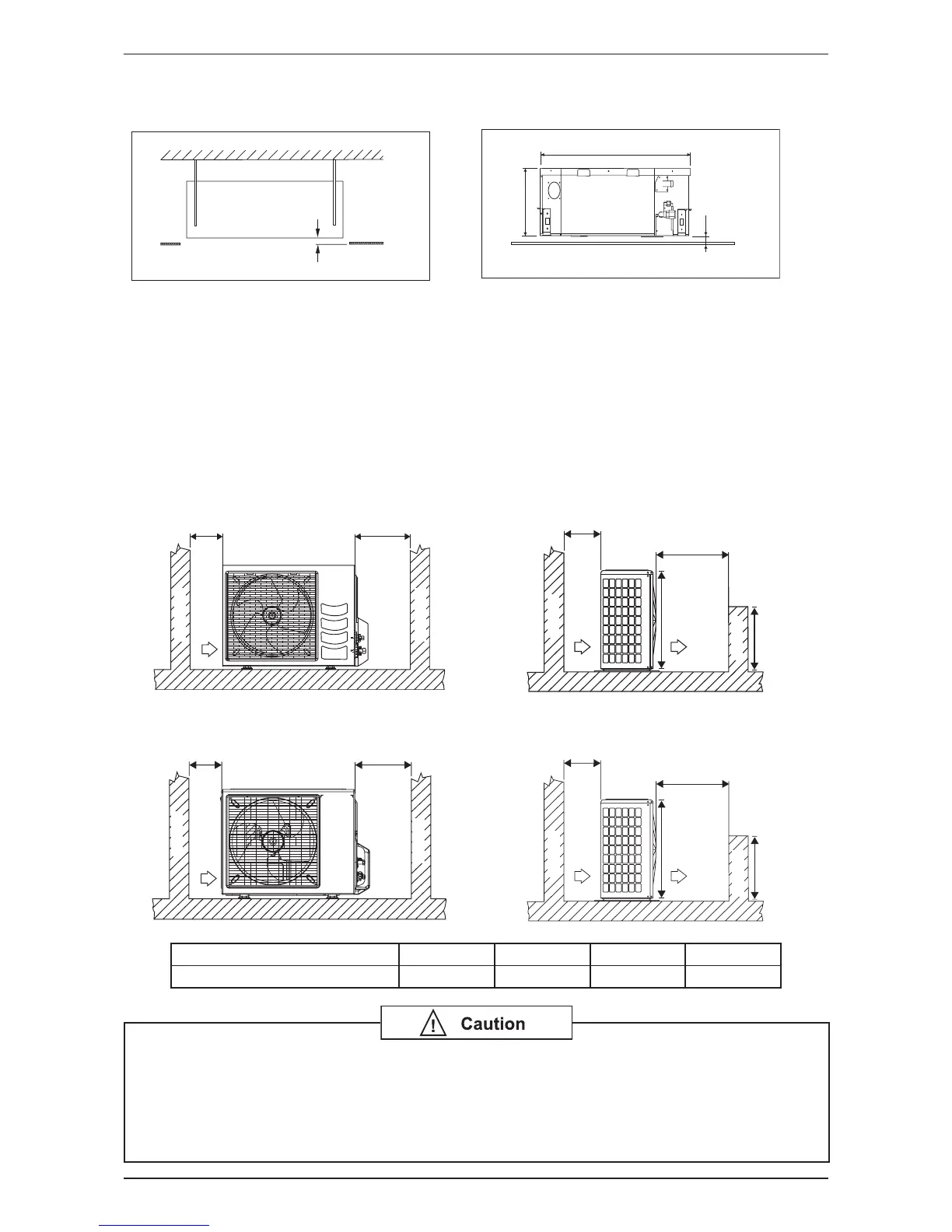 Outdoor unit must be installed such that there is no short circuit of the hot discharge air or obstruction to smooth