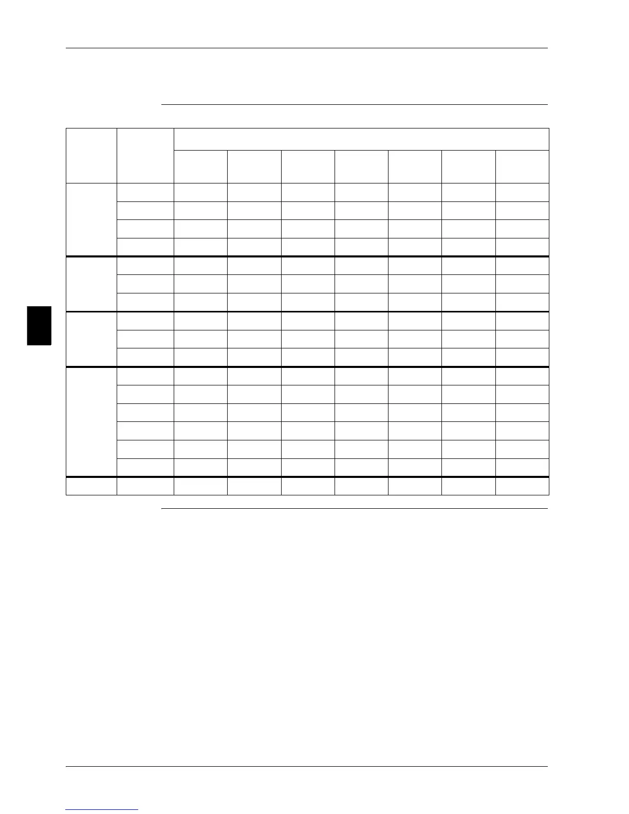 Factory settings The table below contains the factory settings of all indoor units