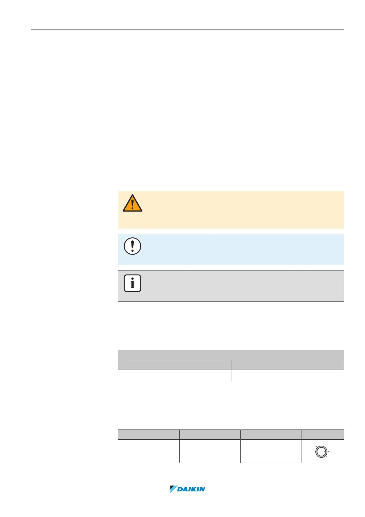 The piping and other pressure-containing parts shall be suitable for refrigerant. Use