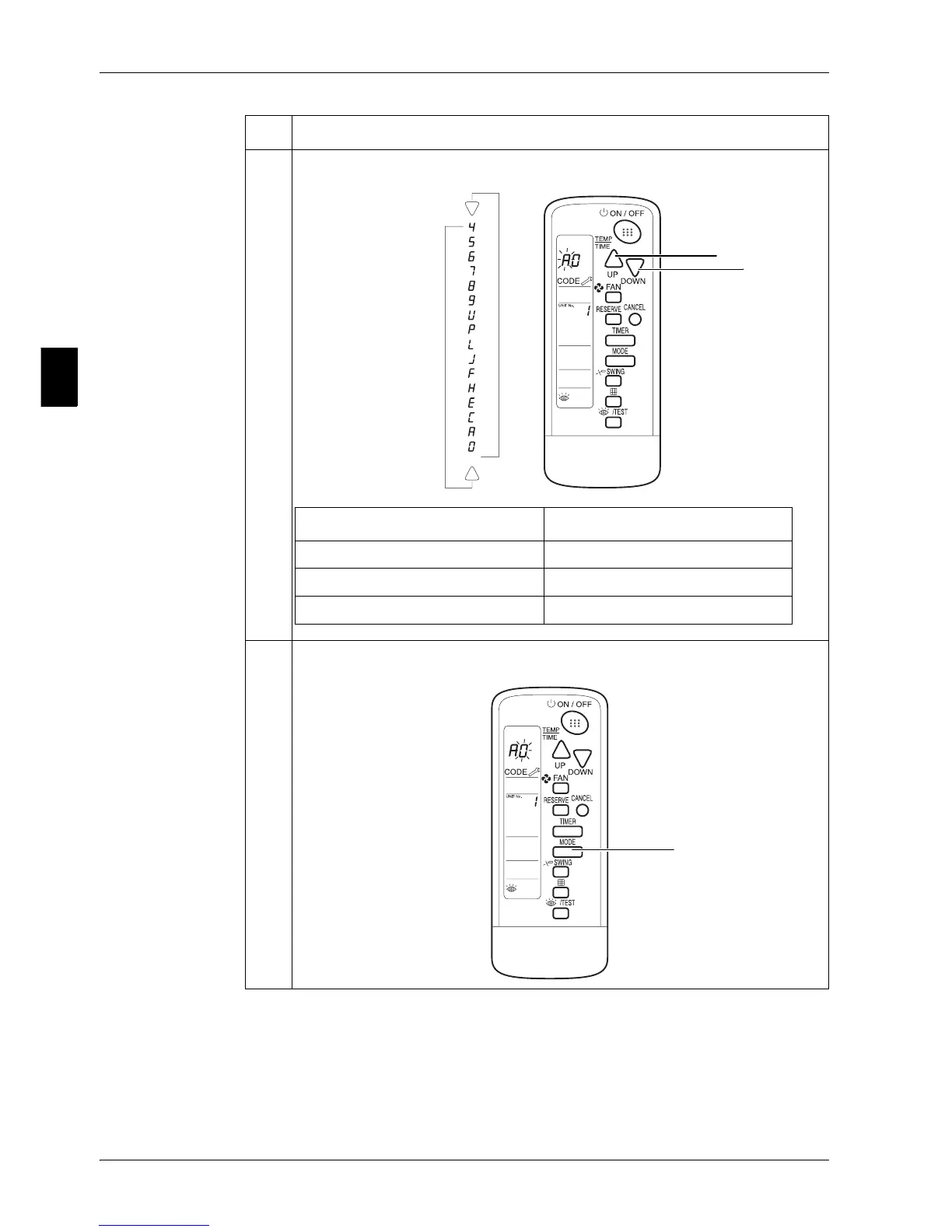 4 Press the UP or DOWN button to change the error code upper digit until the receiver of