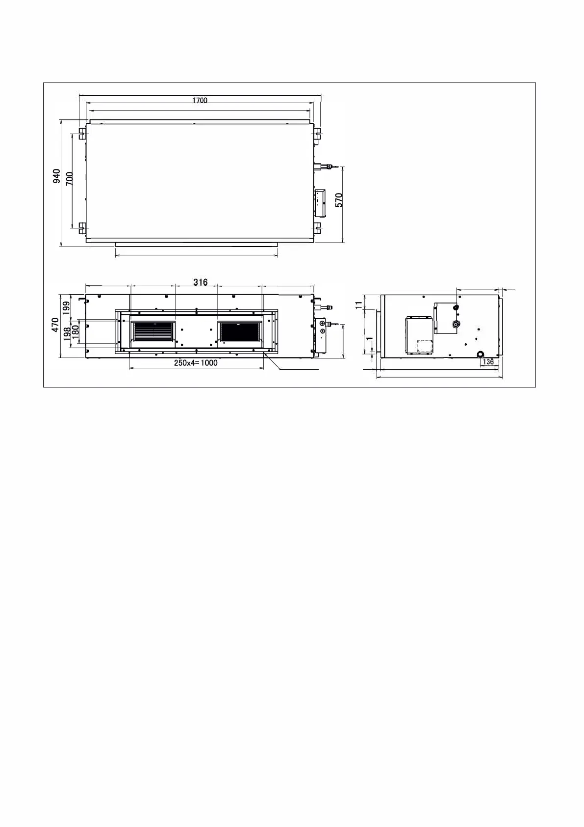 Daikin FDKR200AV16 - FDKR400 AV16 Indoor Unit Dimensions