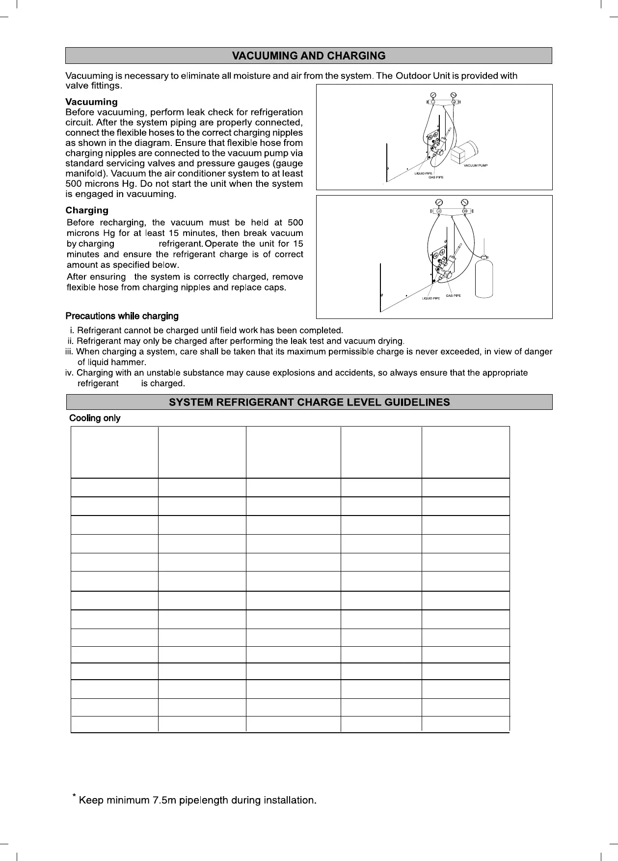 Extra 0.6Kg should be charged for standard pipe length in each unit during installation in field.
