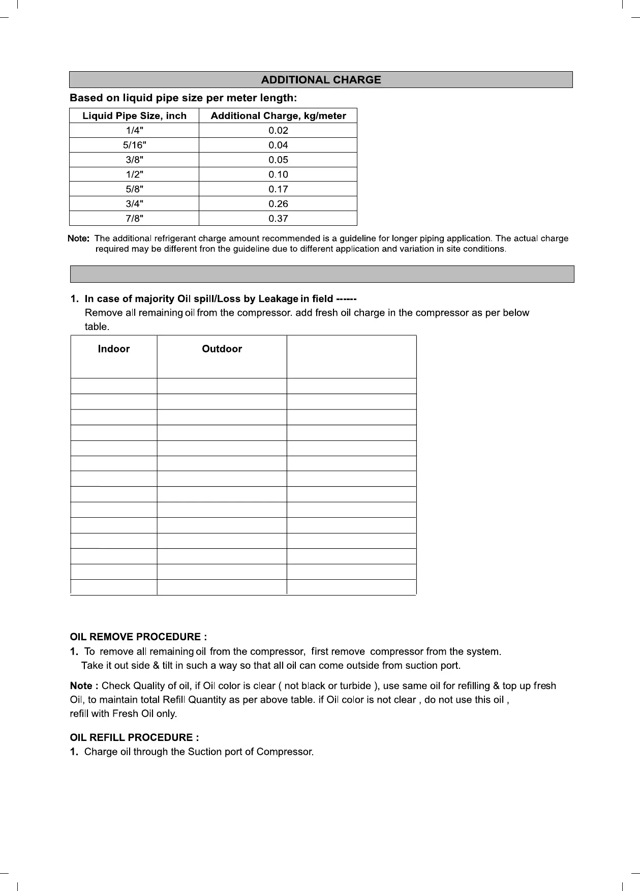 OIL REFILL CHARGE GUIDELINES