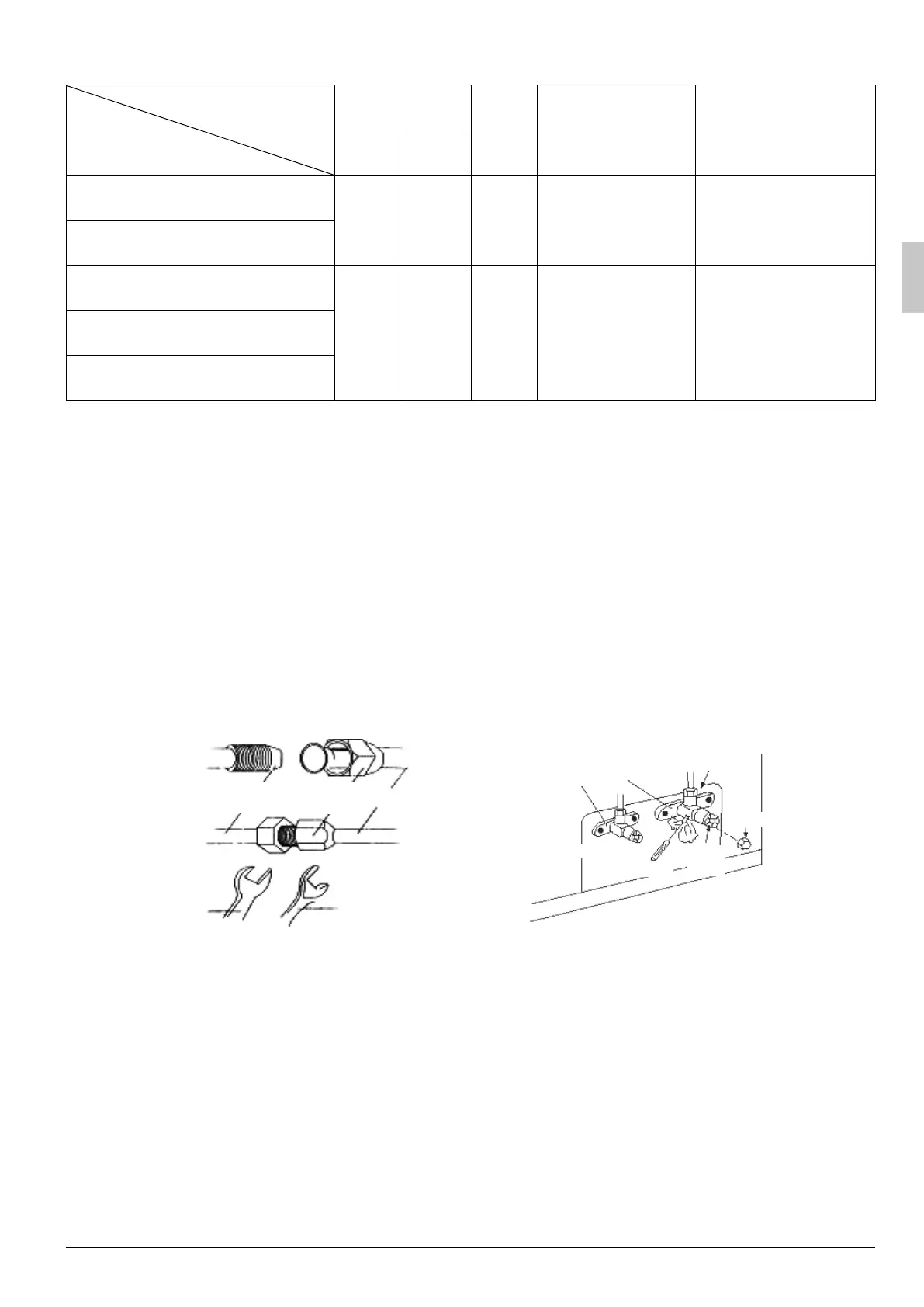 Align the fl ared end of the copper pipe with the center of the thread joint. Manually tighten the fl ared end 1.