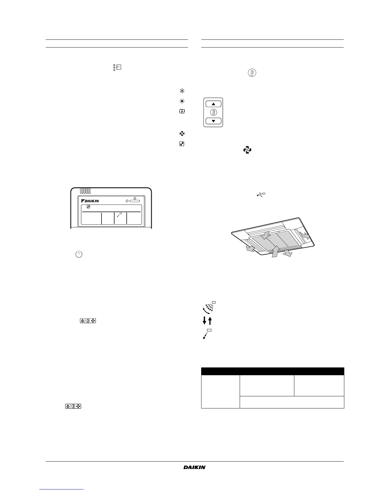 Press the air flow direction adjust button to select the air