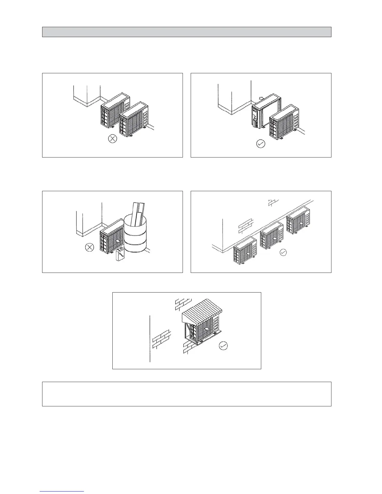 cooling capacity, the location selected for outdoor unit should fulfill the following requirements: