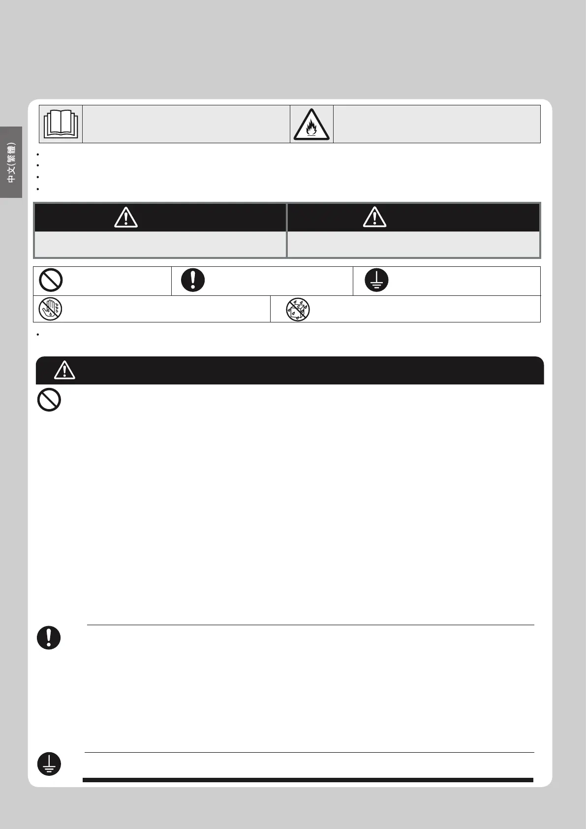 • 務必安裝漏電斷路器。若不安裝漏電斷路器,可能導致觸電或火災。