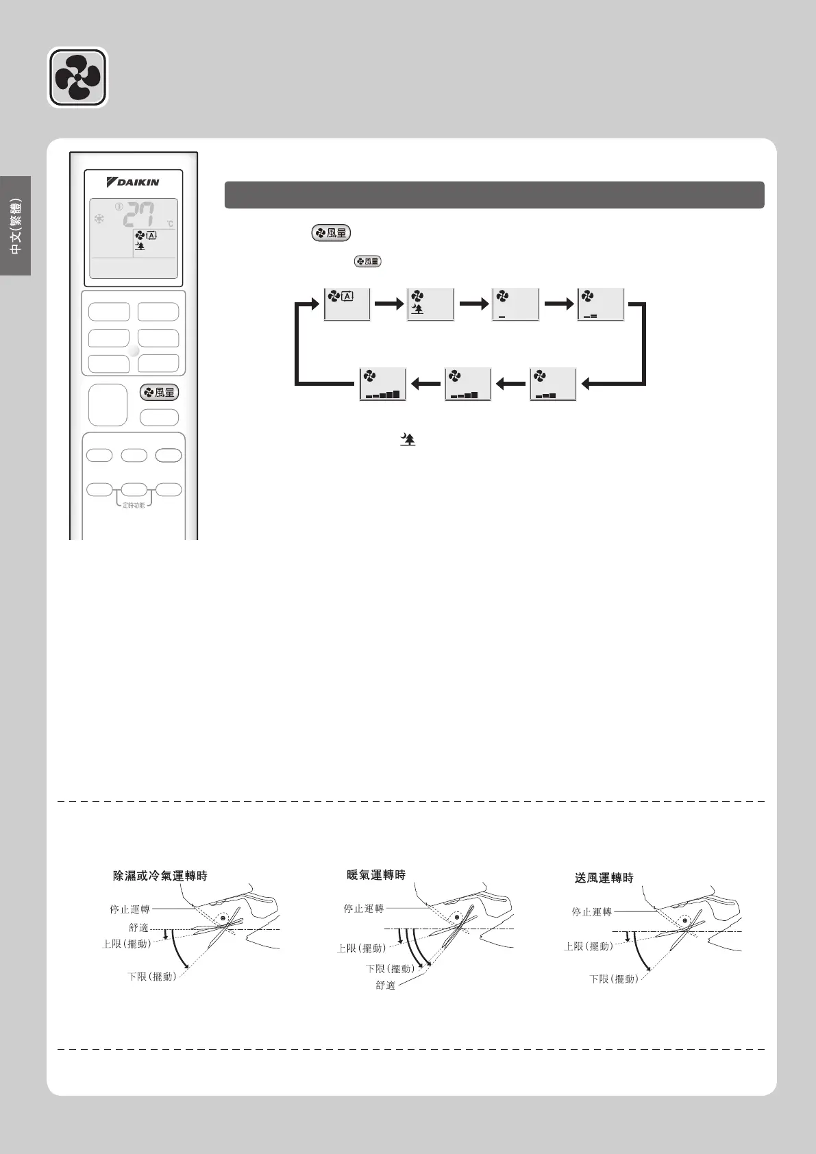每按一下 可依下列順序改變風量。