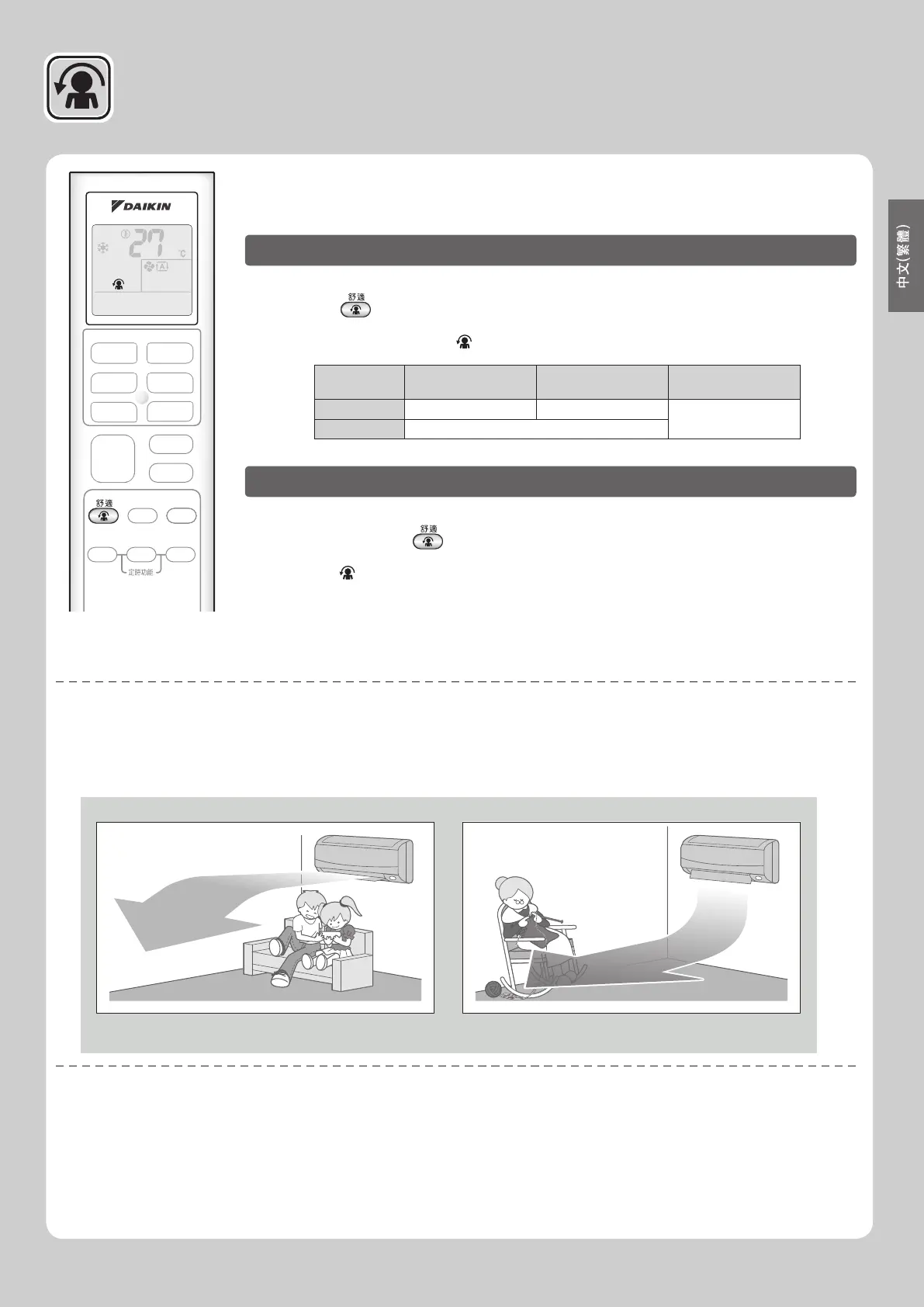 氣流方向與風量將會調整,使氣流不向房裡的人直吹。