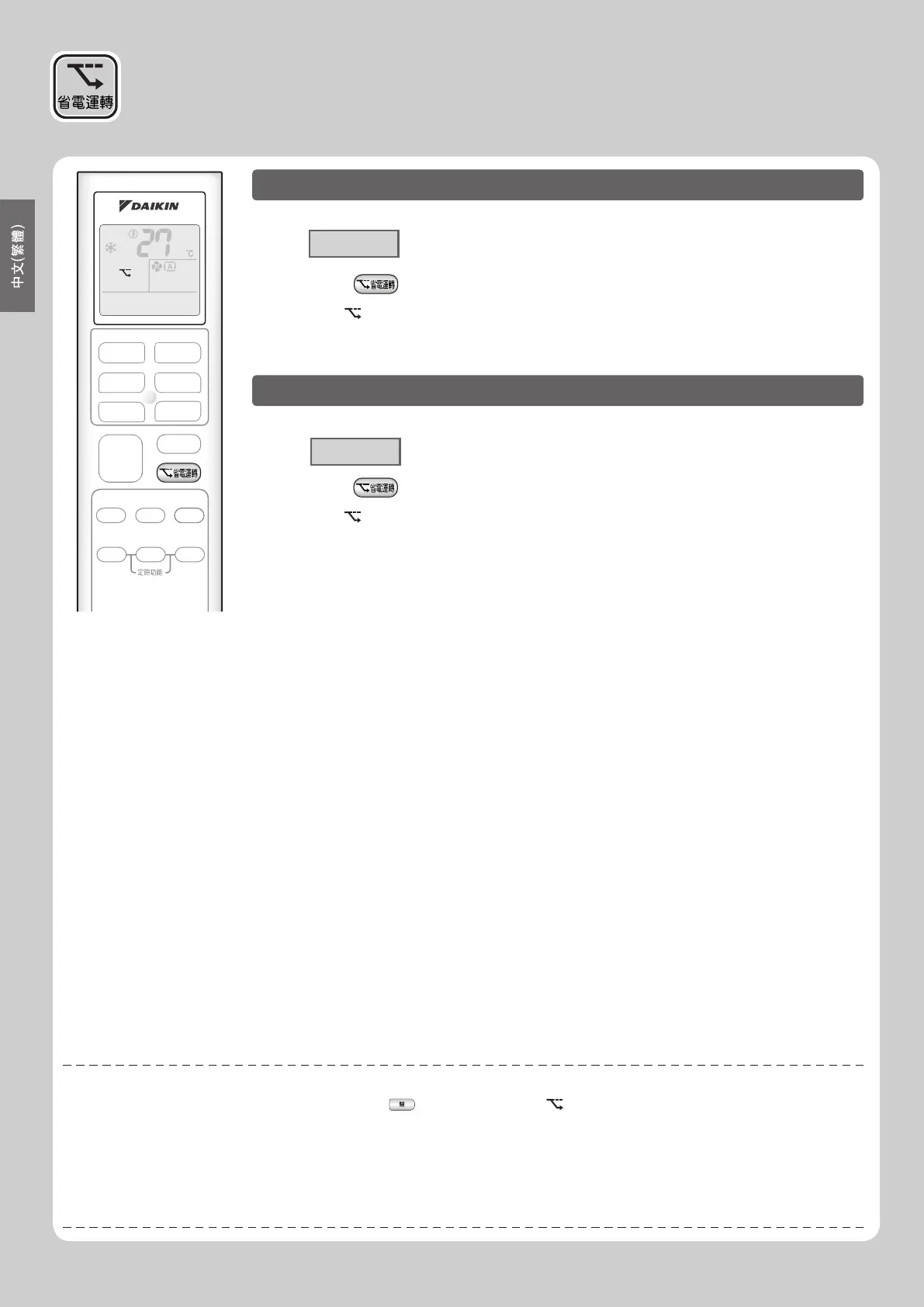 省電運轉只有在空調機運轉時才能設定。按下 會取消設定,而「 」會從 LCD 液晶顯示幕上消失。
