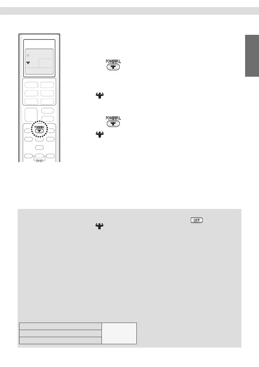 • POWERFUL operation can only be set when the unit is running. Pressing causes the