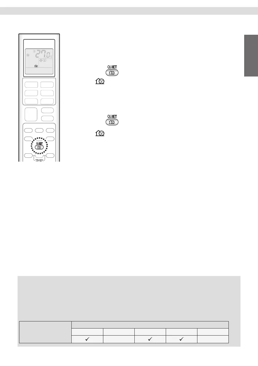 • OUTDOOR UNIT QUIET Operation will drop neither the frequency nor fan speed if the