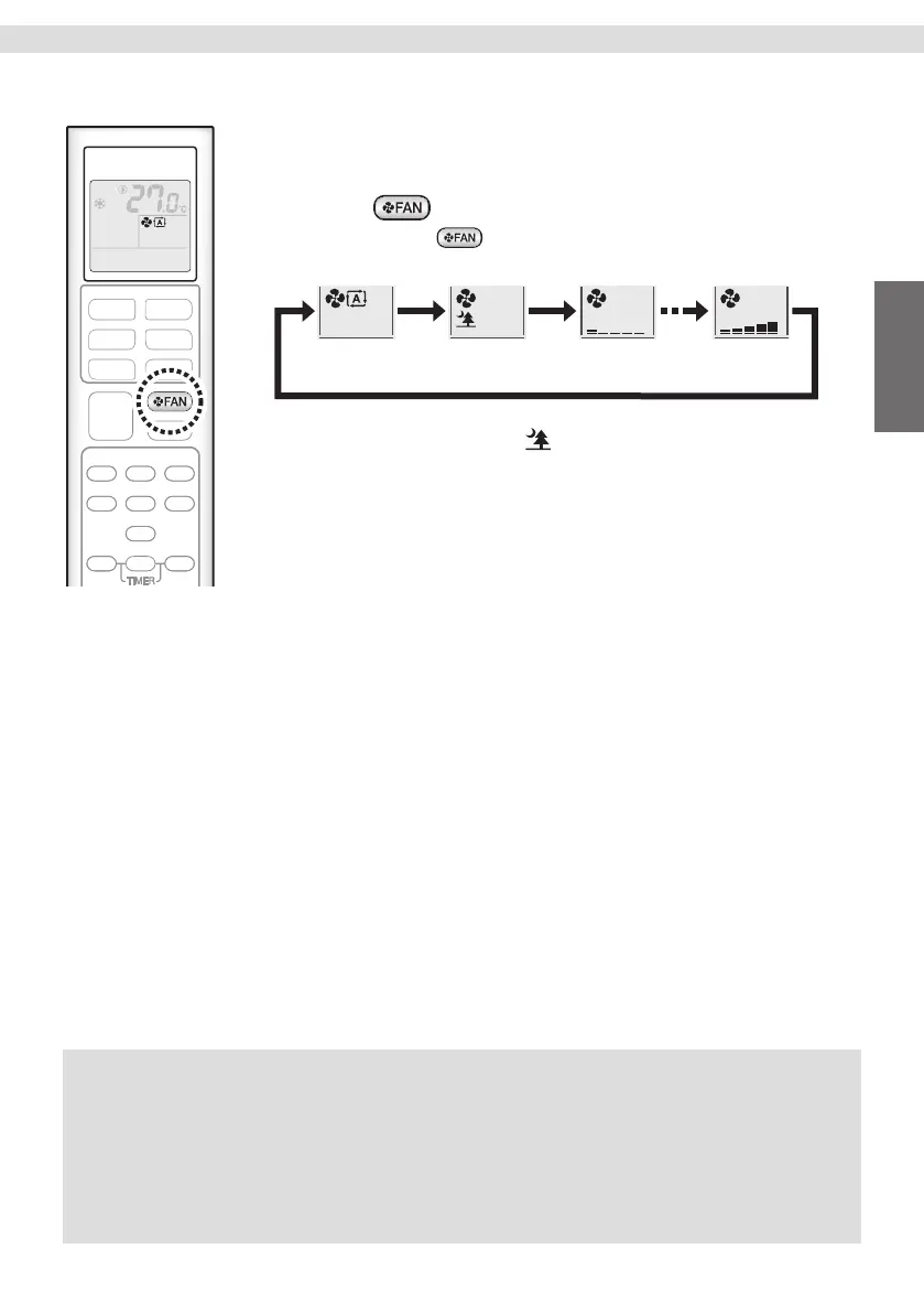 •Mỗi lần nhấn sẽ thay đổi cài đặt tốc độ gió theo trình tự dưới