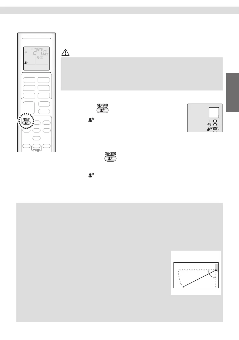 •Độ nhạy phát hiện của cảm biến thay đổi tùy thuộc vào vị trí dàn lạnh, tốc độ của người đi