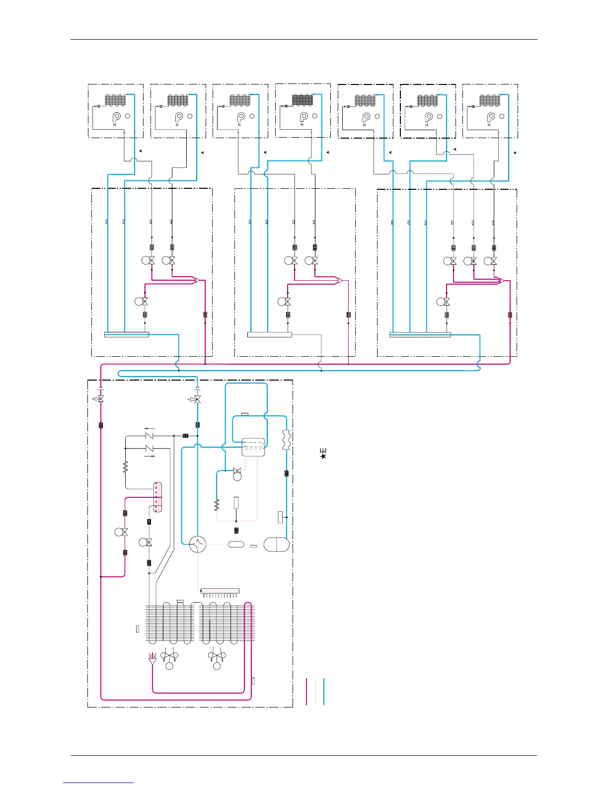 each room motorized valves (EVU·EVT) and EVG·EVL, and fully open EVP only for the
