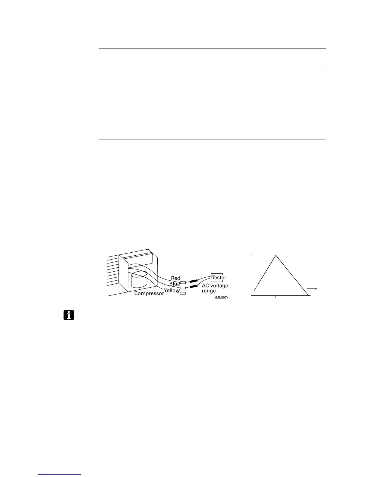 compressor from the terminals. Measure the output voltage of the red, yellow and blue wires