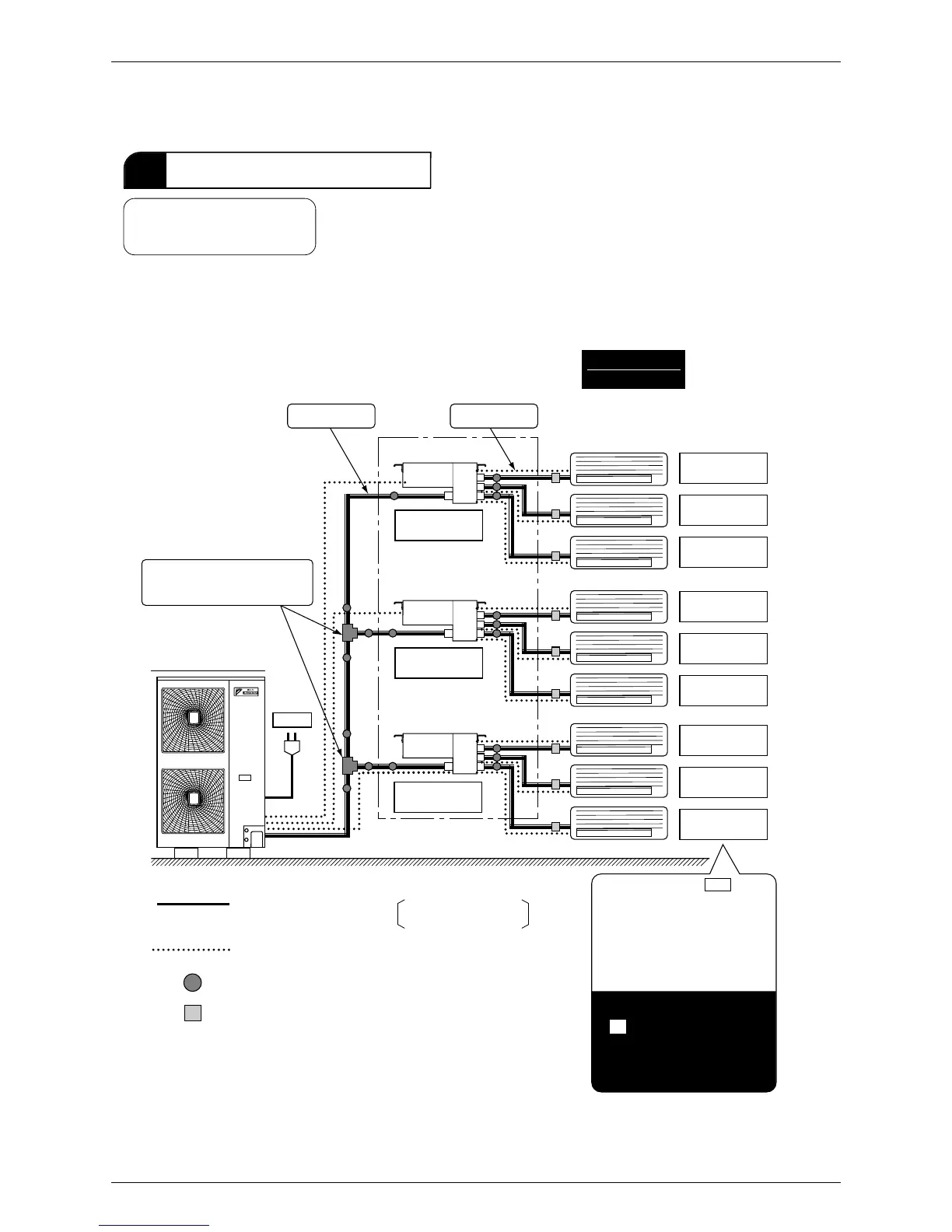 Do not connect more than 7 indoor units together. Choose the BP unit type (2 rooms or 3 rooms) according to the