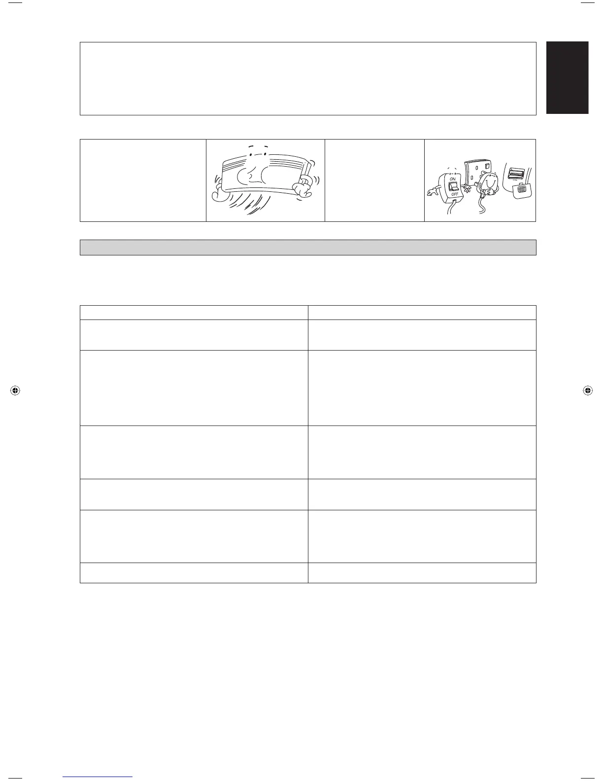 conditioner unit is noted, immediately switch off the power supply to the unit. Check the following fault