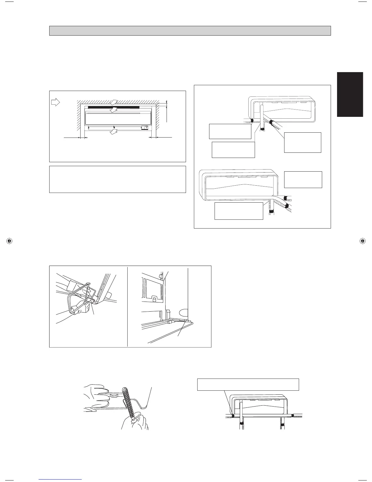Puis, insérez le tube d’évacuation et les tuyaux de réfrigérant dans le trou mural aprés les avoir inseres dans le trou de tuyauterie coupé ouver.