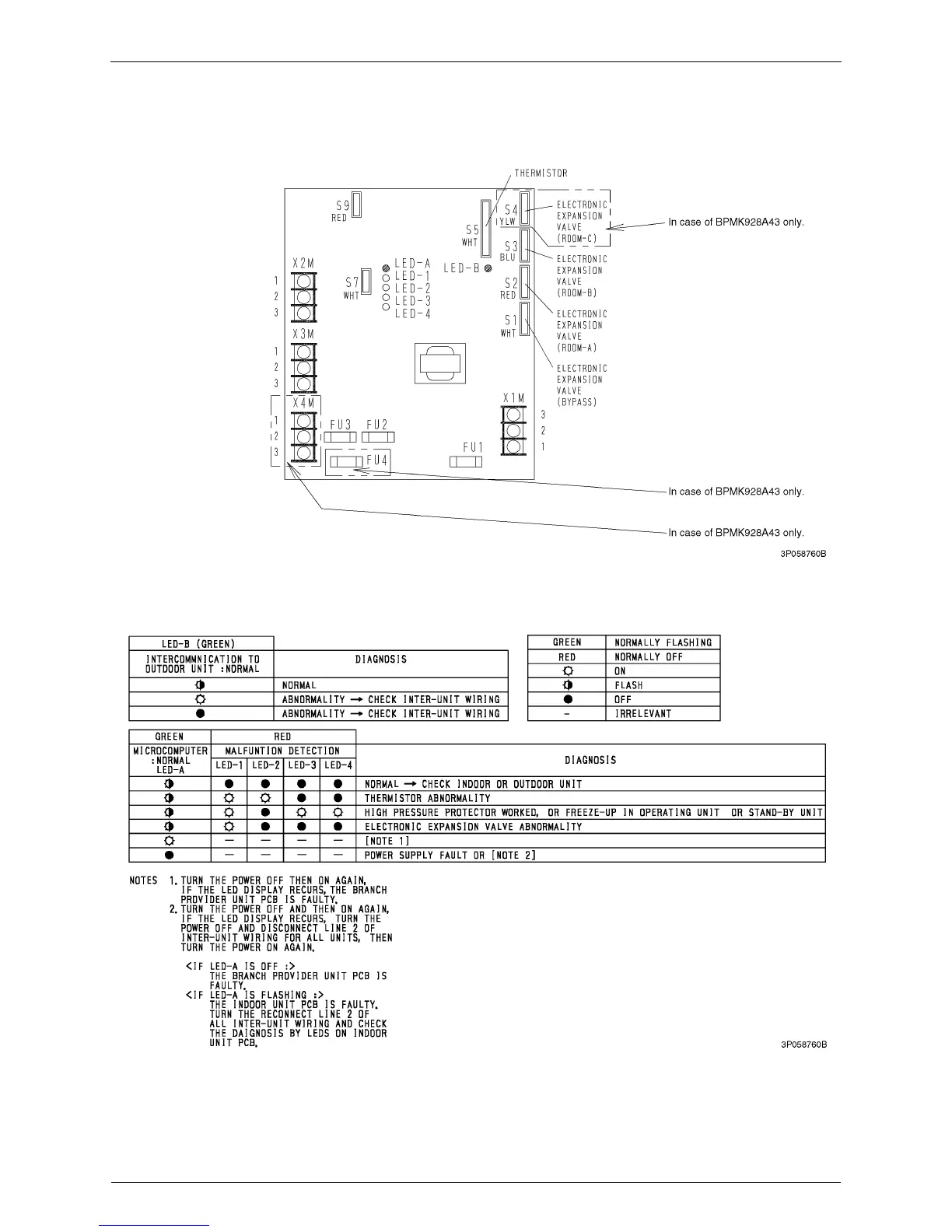 Daikin FTKD60JVE - BP Unit Trouble Diagnosis; PCB Parts Layout; LED on Branch Provider Unit (Diagnosis Leds)