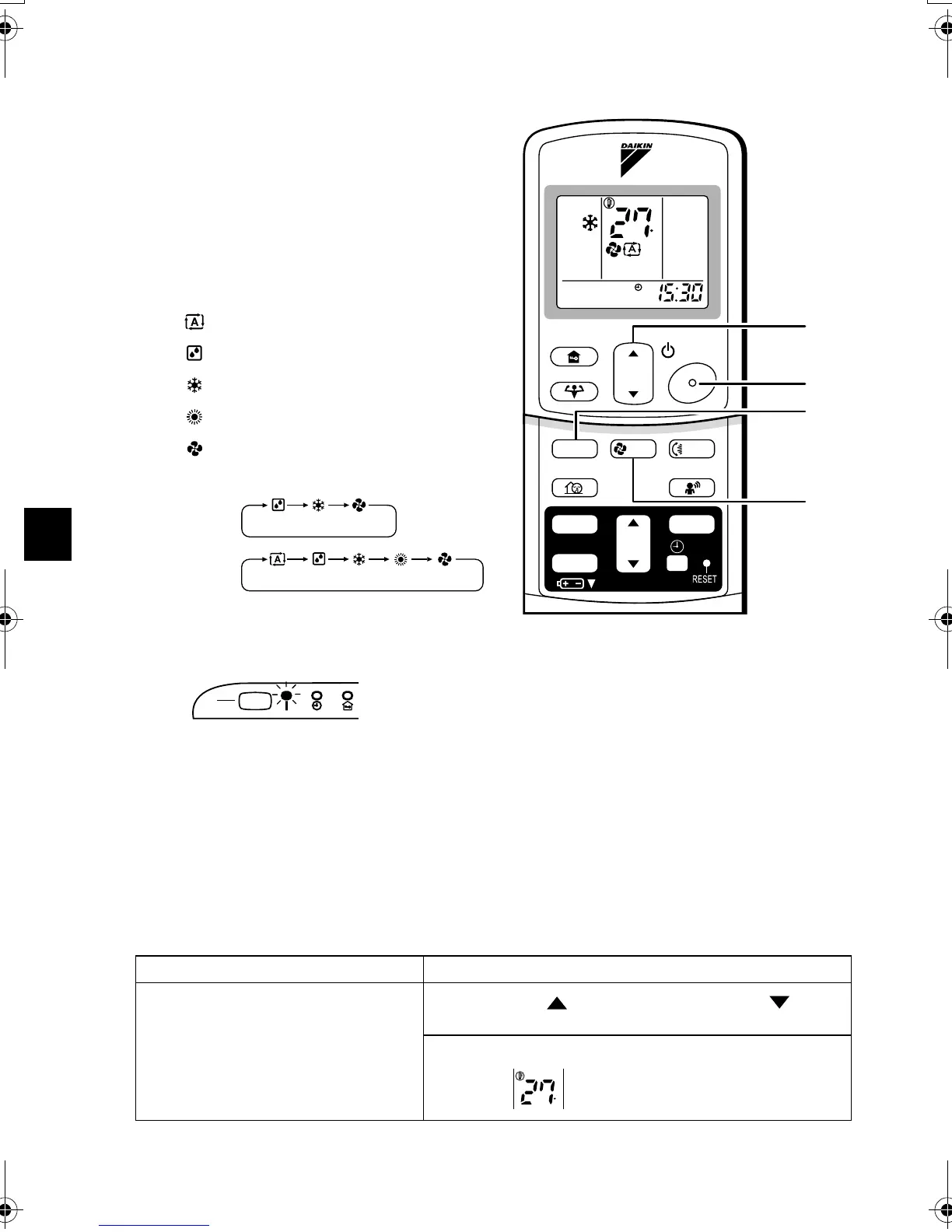 Daikin FTKE25BVMT - Basic Operation Modes; Starting and Stopping Operation; Temperature Adjustment