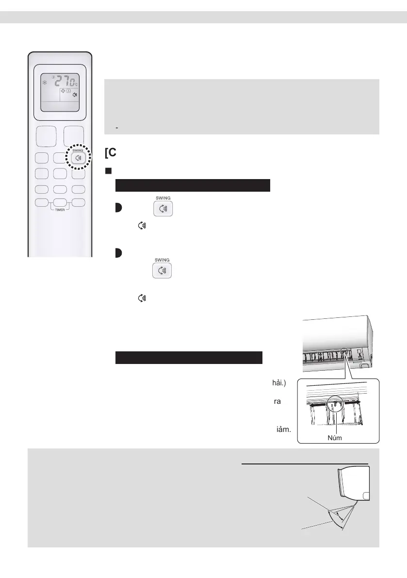 • Luôn sử dụng bộ điều khiển từ xa để điều chỉnh các góc của cánh đảo gió.