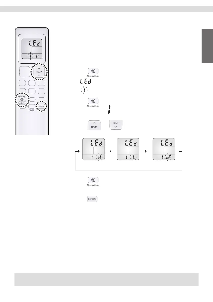 Adjust the brightness of the indoor unit display as desired, or turn OFF the