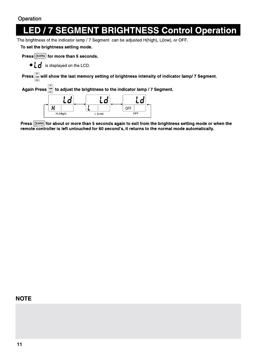 “Ld” indicates for the brightness (Light) feature which is appeared on set temperature area.