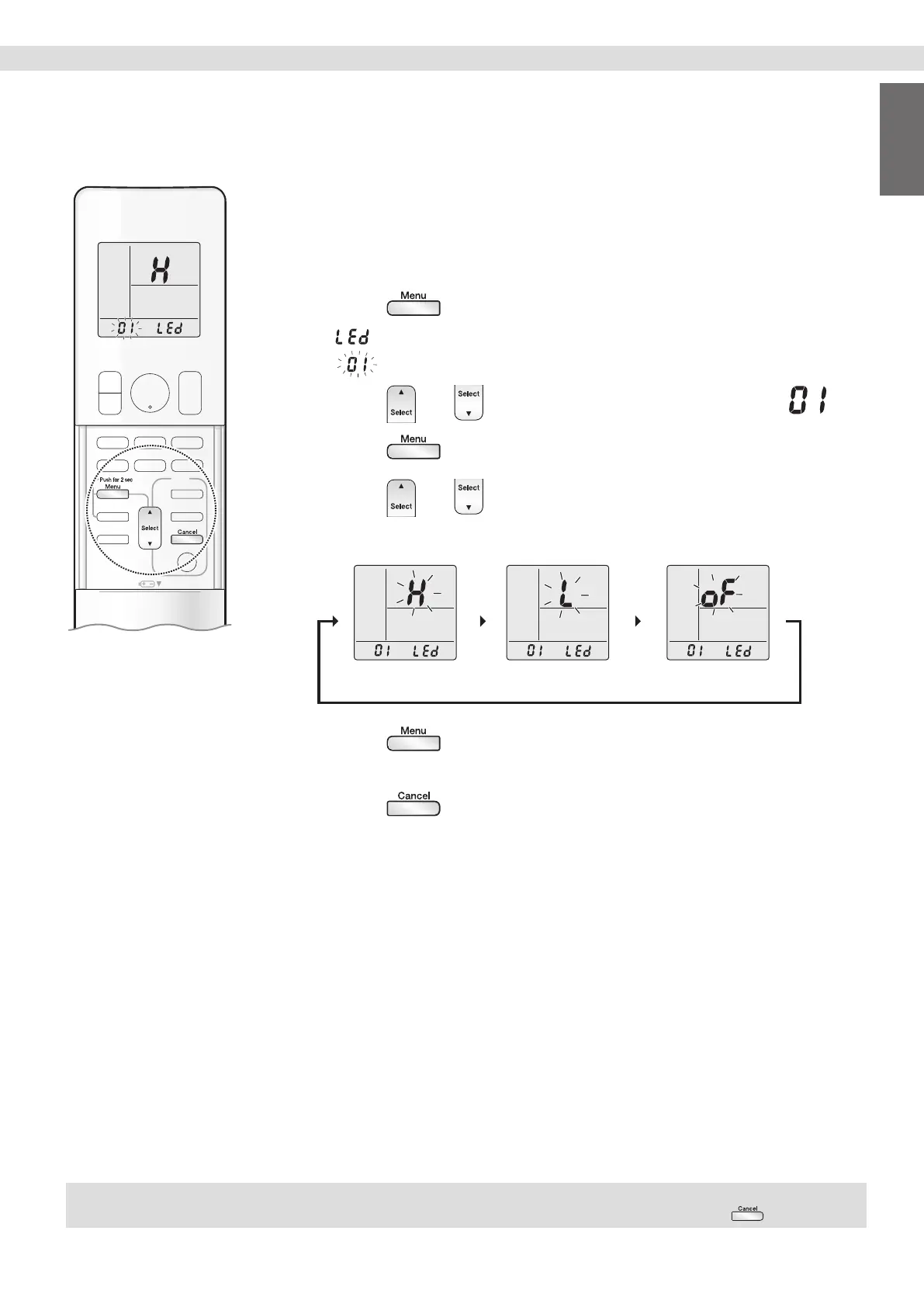 Adjust the brightness of the indoor unit display as desired, or turn OFF the display.