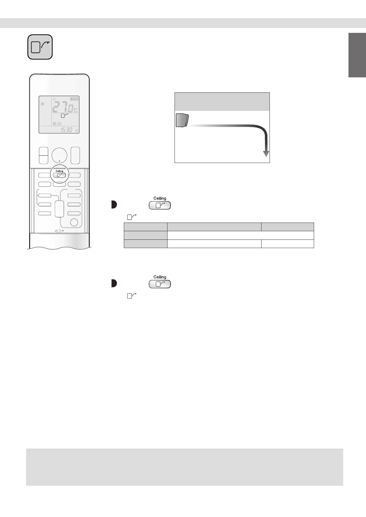 • If the upward and downward airow direction is selected, the CEILING AIRFLOW operation will be canceled.