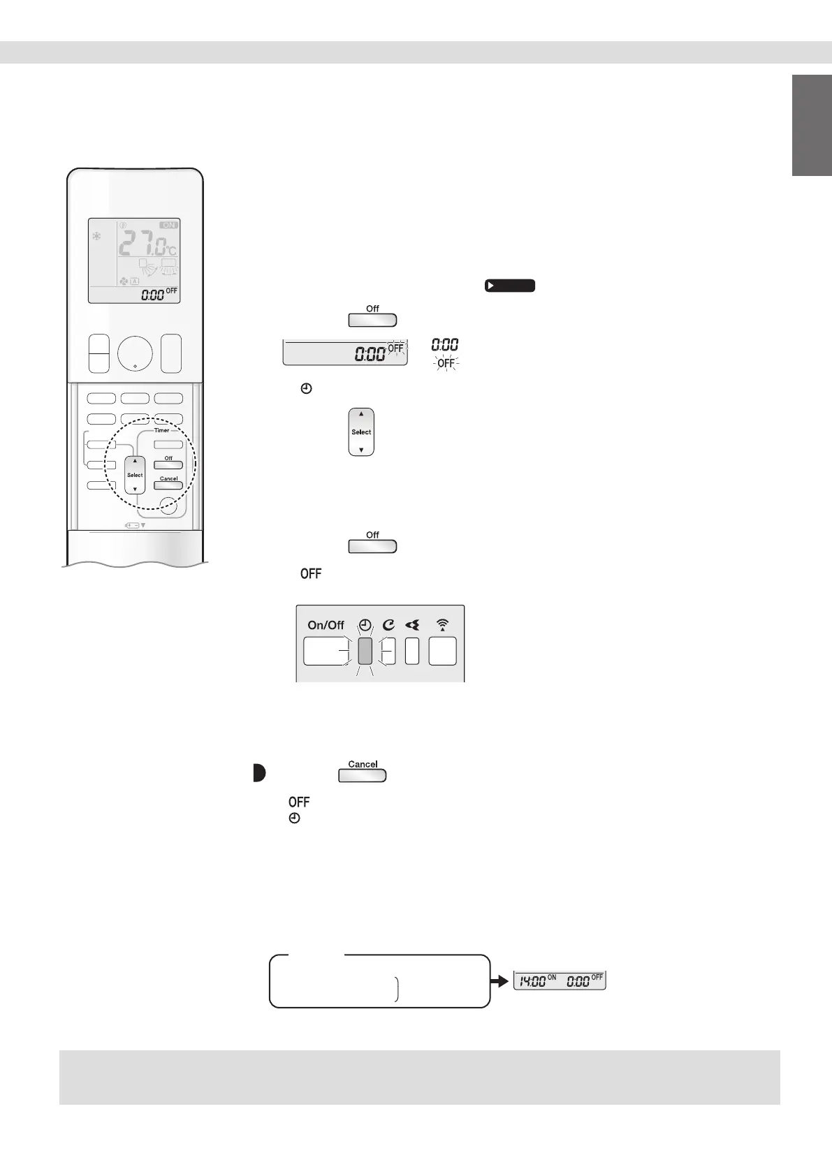 • When the OFF TIMER is set, the air conditioner automatically adjusts the temperature setting (0.5°C up in COOL) to prevent excessive