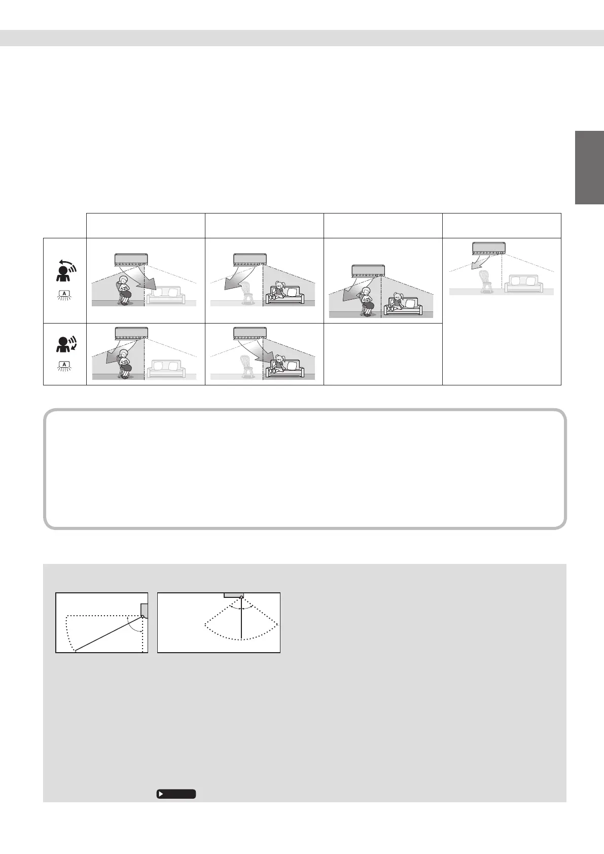 • Độ nhạy phát hiện của cảm biến thay đổi theo vị trí dàn lạnh, tốc độ của người qua lại, phạm vi nhiệt độ, v.v.