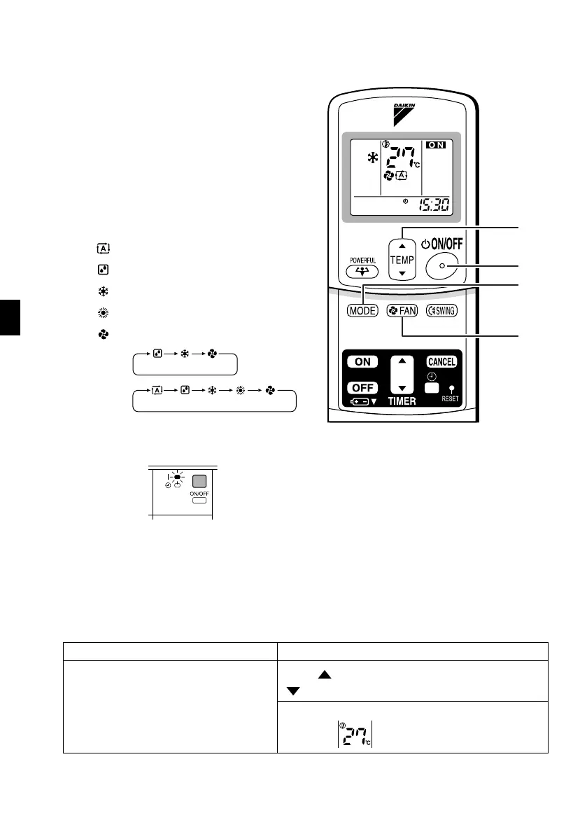 AUTO · DRY · COOL · HEAT · FAN Operation