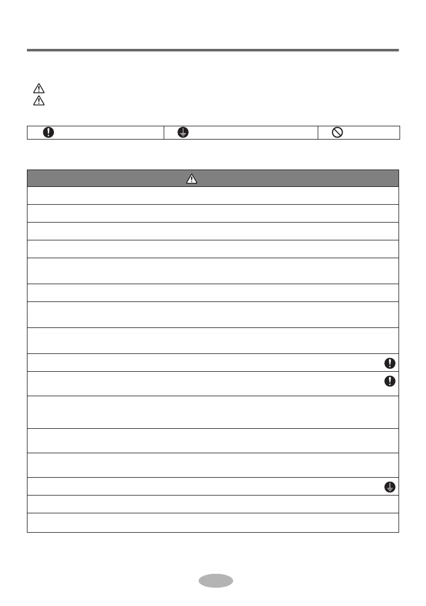 Insufficiency of power circuit capacity and improper workmanship may result in electric shocks or fire.