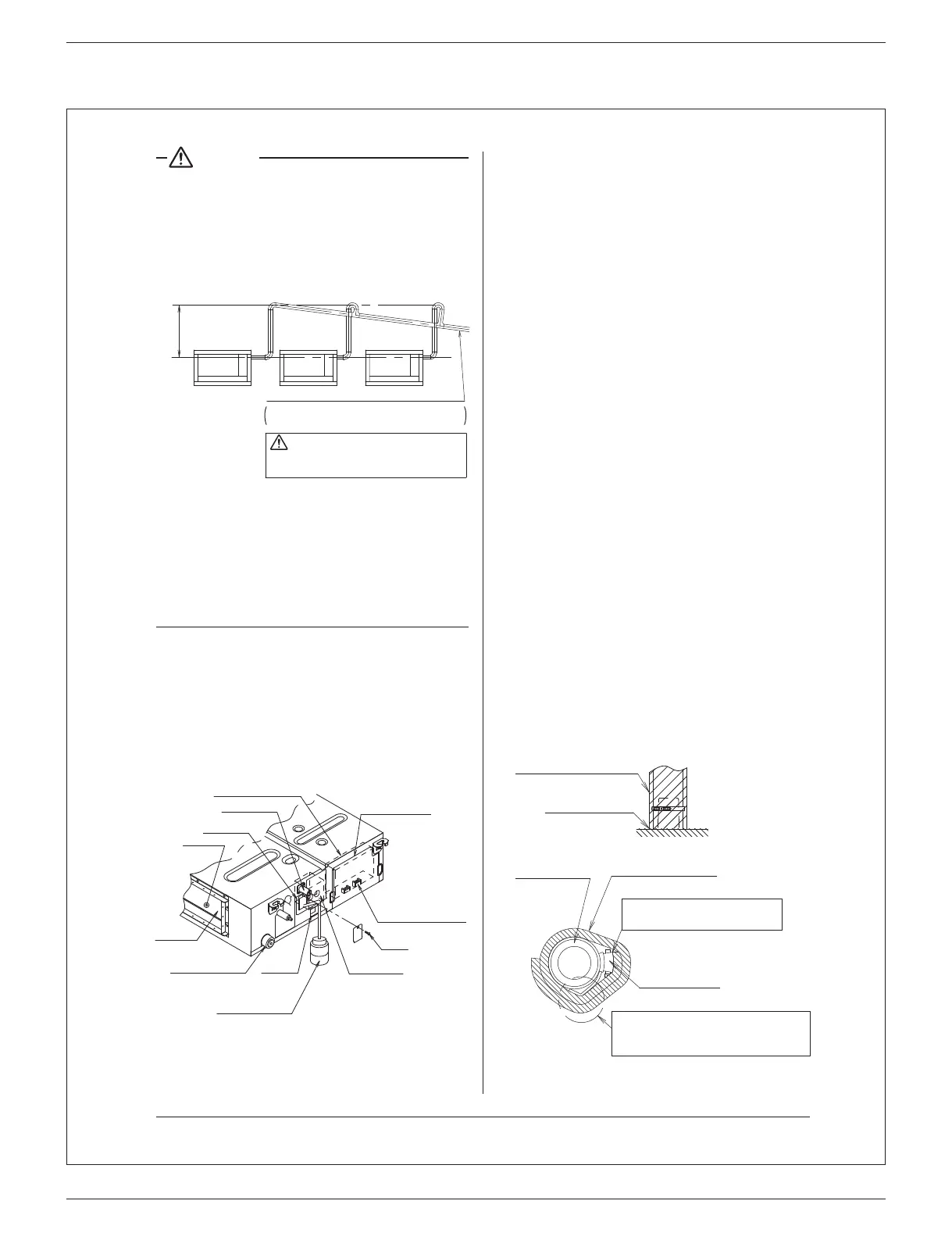 Positioning the upward drain piping at an angle may cause