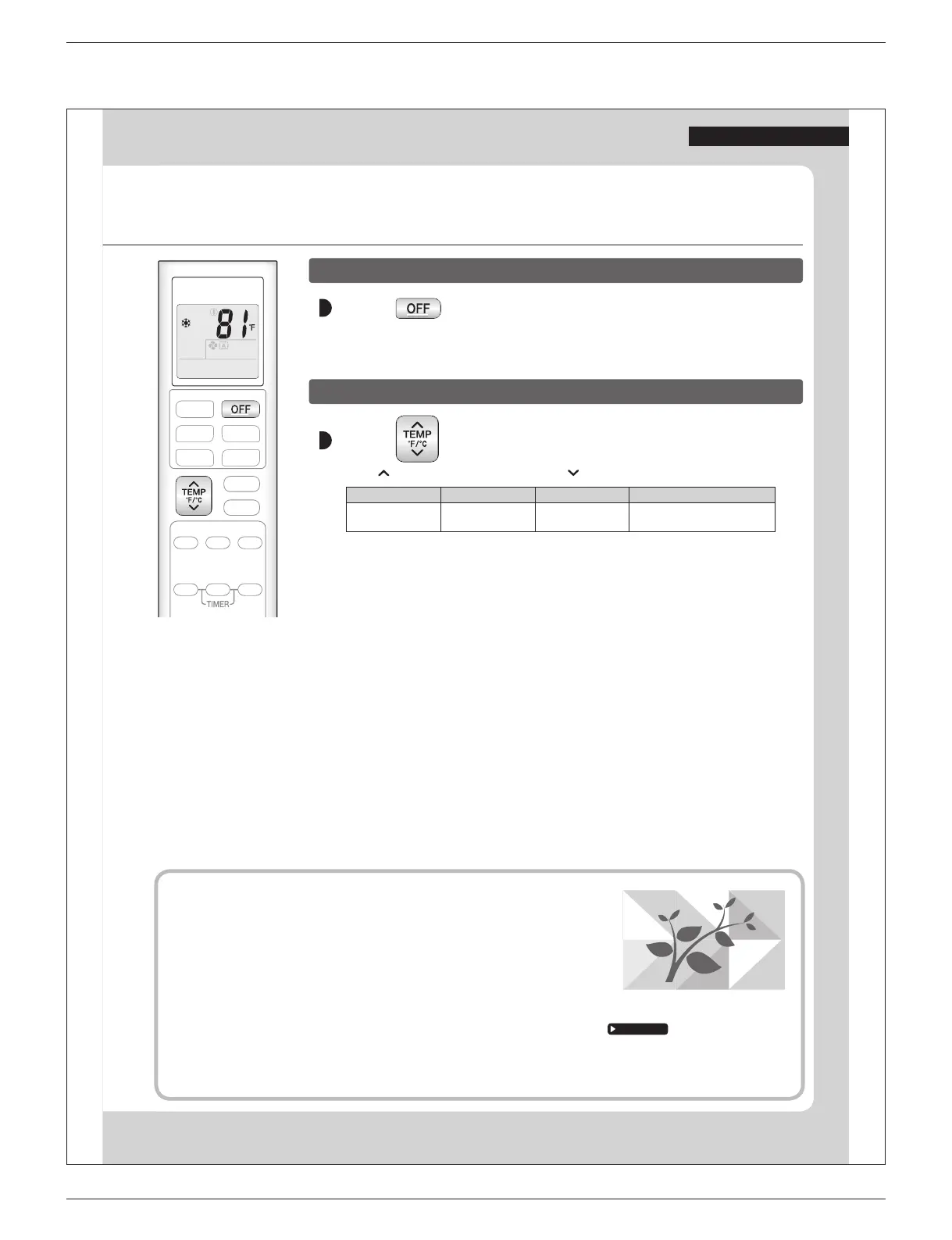 • Press to raise the temperature and press to lower the temperature.