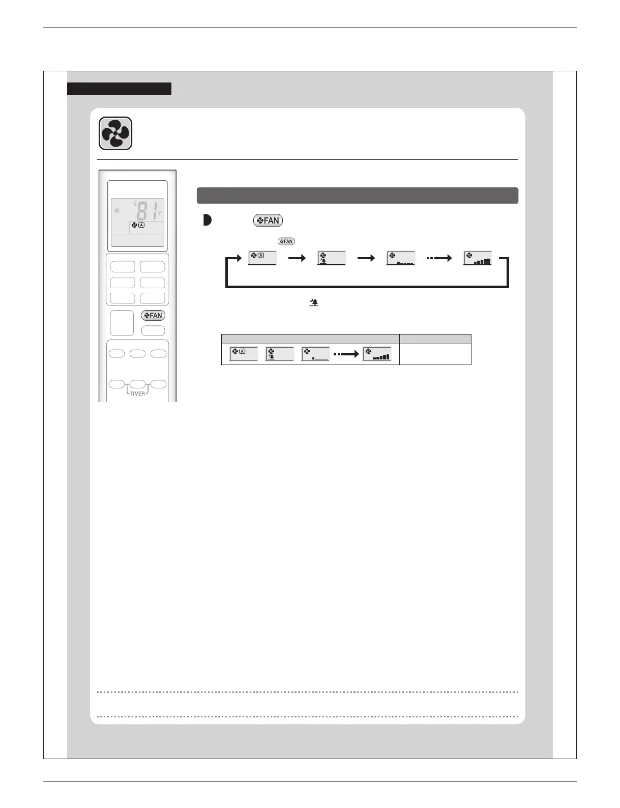 • Each pressing of changes the air ow rate setting in sequence.