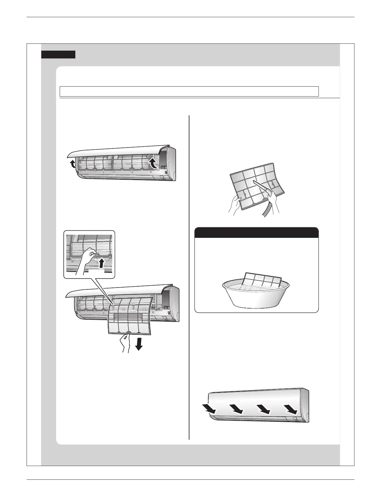 • Wash the air fi lters with neutral detergent thinned with